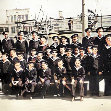 FOTO 2. Los capellanes del Asilo Naval pasaron años intentando que Joan tuviera una vida religiosa, pero la personalidad rebelde del pequeño lo hizo imposible. Aqui posa con el grupo de niños huérfanos del Asilo Naval de Barcelona.